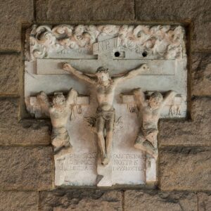 “The procession comes to a halt. It has reached its appointed destination. A scene of unsurpassed brutality unfolds before our eyes. Spurred on by the gloating Scribes, Pharisees and high priests, the Roman soldiers lay hold of the cross and drop it to the ground. Shamelessly, they strip Jesus of His clothing and with it they tear the flesh that clings to His inner garments. Ghastly wounds are reopened and streams of blood flow afresh. Thus denuded, He is thrown upon the cross and made secure. One of the executioners places a large spike upon His right hand. The heavy hammer rises and falls with horrible precision and the iron nail crashes through flesh and bone, sinews and nerves. The left hand and then the feet of the sacred Victim undergo the same excruciating torture. Behold the innocent Lamb of God upon the altar of the cross! With no little effort, the unwieldy frame bearing its precious treasure is lifted on high. The lower beam is dropped with a dull thud into the hole prepared for it and fixed firmly in the ground. Thereupon, the two thieves are crucified: one on the cross to His right, and the other on a cross to His left.”